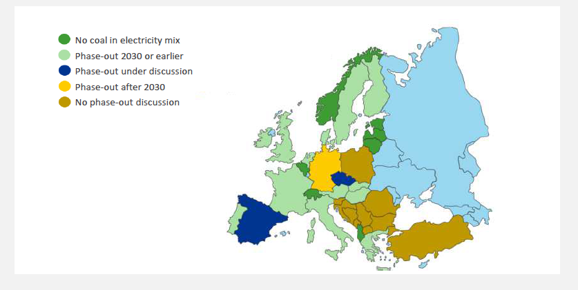 Figura 5. Estado de la discusión sobre la eliminación del carbón en Europa.